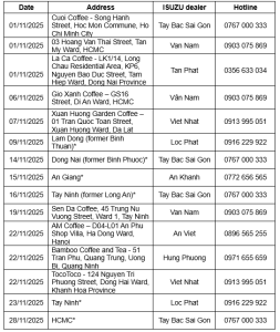 ISUZU VIETNAM TEST DRIVE & DISPLAY EVENT SCHEDULE – NOVEMBER 2025